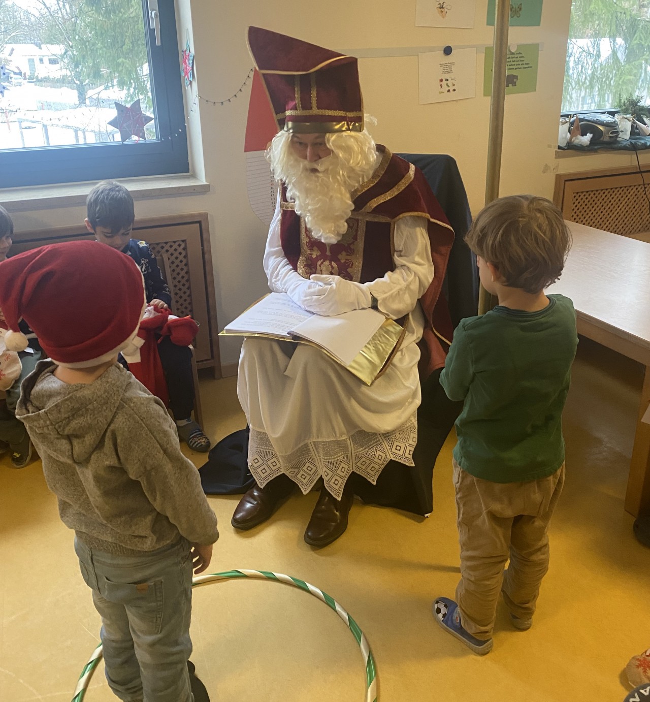 Wie jedes Jahr besucht der Nikolaus am 5. und 6.12. die Kinder. Gerade am Standort in Putzbrunn hat er richtig viel zu tun: 56 Kinder der Wohn- und Notaufnahmegruppen, knapp 40 Kinder der Kita und 32 Kinder in der HPT warten voller Aufregung. Daher machen bei uns sogar zwei Nikoläuse die Runde, und teilen sich die Aufgabe.